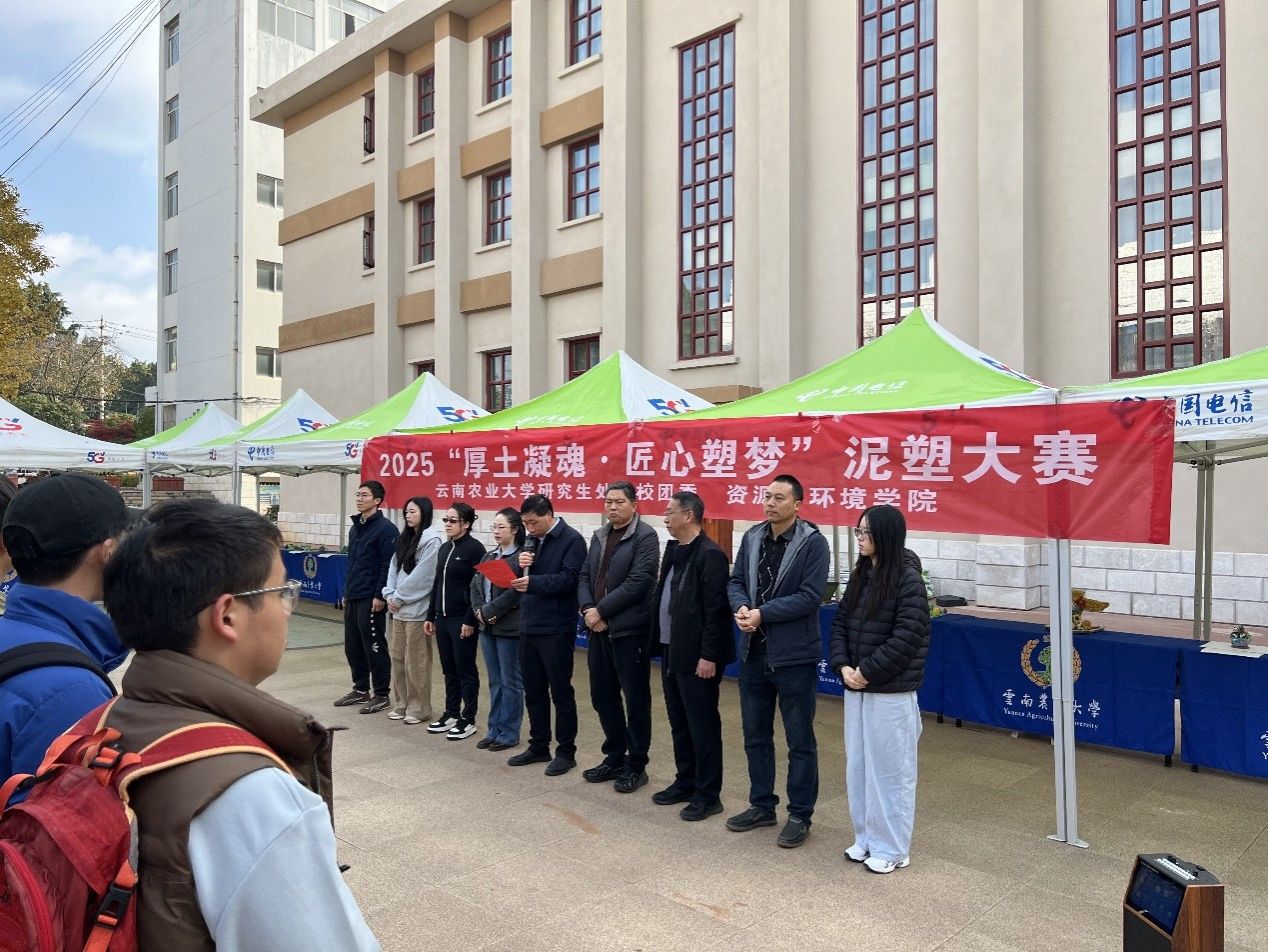 12月5日世界土壤日当天,由研究生处、校团委与资环学院联合举办的“厚土凝魂·匠心塑梦”泥塑大赛在校友会堂前广场举行展览。研究生处处长桂富荣、校团委副书记易璟、学院班子成员、院学工办(团委)老师以及200余名学生参加展览活动。