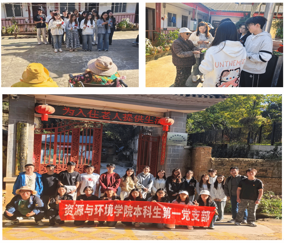 2025年11月14日,为弘扬中华民族尊老敬老爱老助老的传统美德,深化学生党员的社会责任感与服务奉献精神,资源与环境学院本科生第一党支部组织学生党员志愿者走进鸿福敬老院,以文艺表演与贴心陪伴为老人们送去温暖与关怀,让党旗在基层服务一线熠熠生辉。